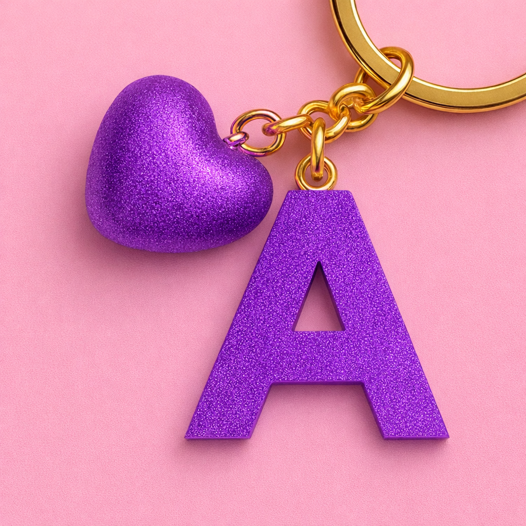 A Harfi El Yapımı Reçine Kalp Anahtarlık