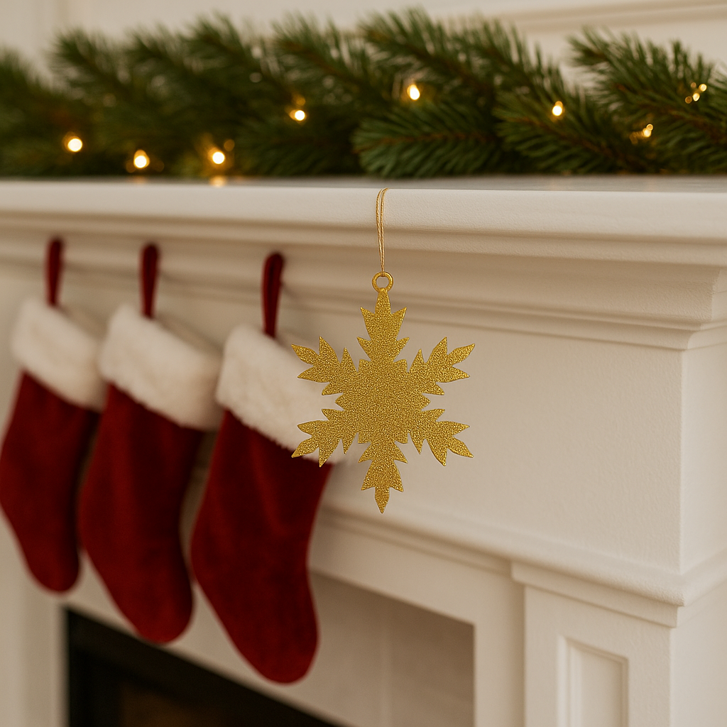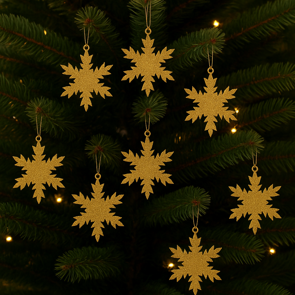 Evinize zarafet ve ışıltı katacak, lüks temalı bu Altın Glitter Kar Tanesi Süs Seti ile unutulmaz bir yeni yıl dekoruoluşturun!