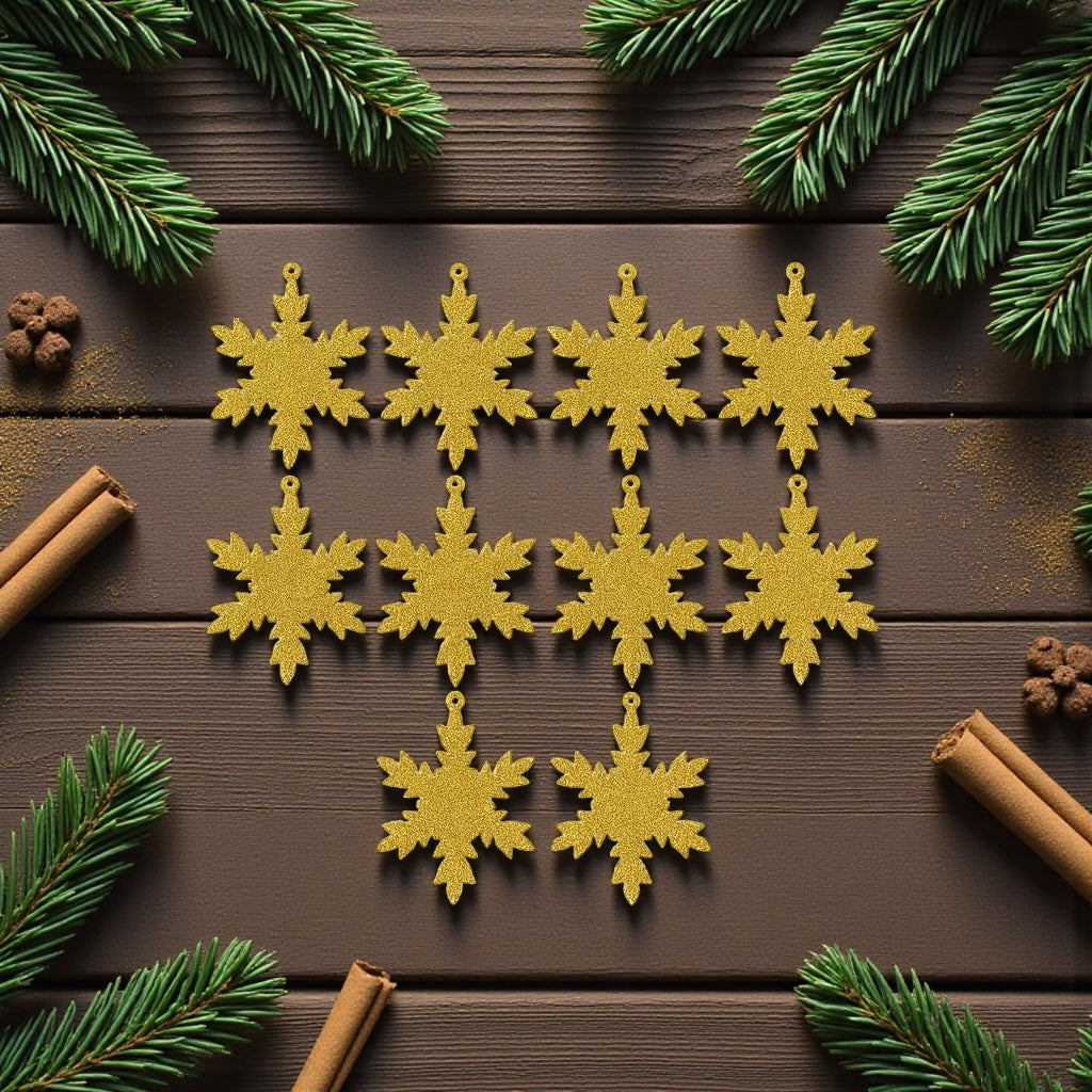 Altın Glitter Kar Tanesi Süs Seti (10 Parça) | Lüks Yılbaşı Ağacı Süsü ve Dekoratif Süs