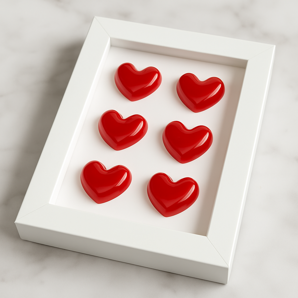 Bu eşsiz el yapımı reçine kalp dekoratif tablo ile aşkı ve tutkuyu evinize taşıyın. 10x15 cm boyutlarındaki bu özel tasarım, parlak kırmızı kalplerin beyaz çerçeveyle mükemmel uyumunu sergiliyor. Reçine sanatı kullanılarak özenle hazırlanan bu modern duvar dekoru, yaşam alanınıza sıcaklık ve romantizm katacak.