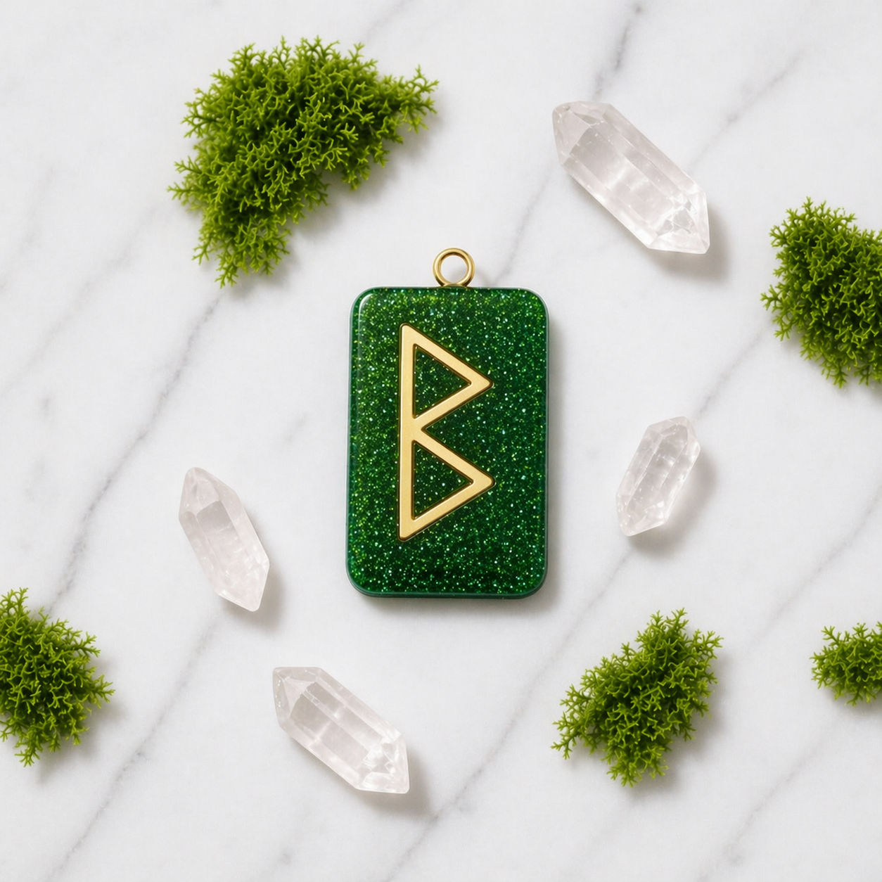 Berkano Yeni Başlangıçlar ve Gelişim El Yapımı Reçine Rün Kolye Ucu