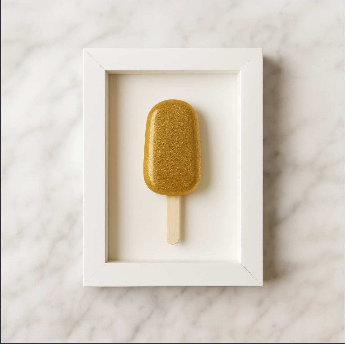 El Yapımı Altın Simli Dondurma Dekoratif Tablo - 10x15 cm - Modern Duvar Dekoru