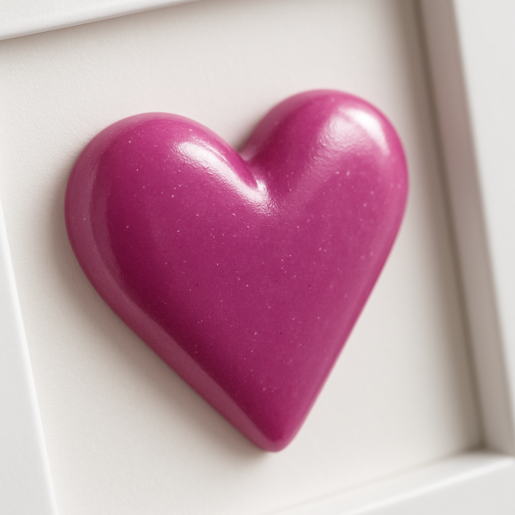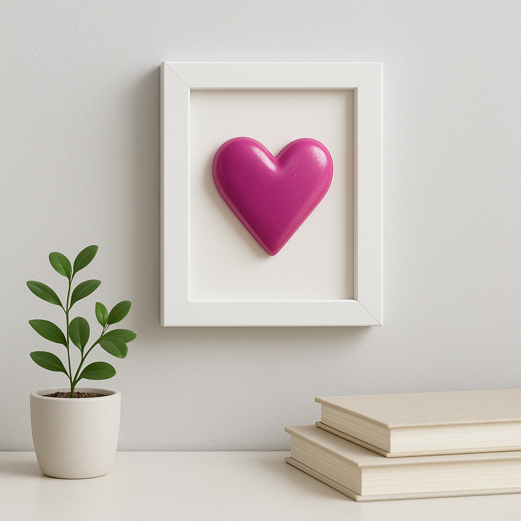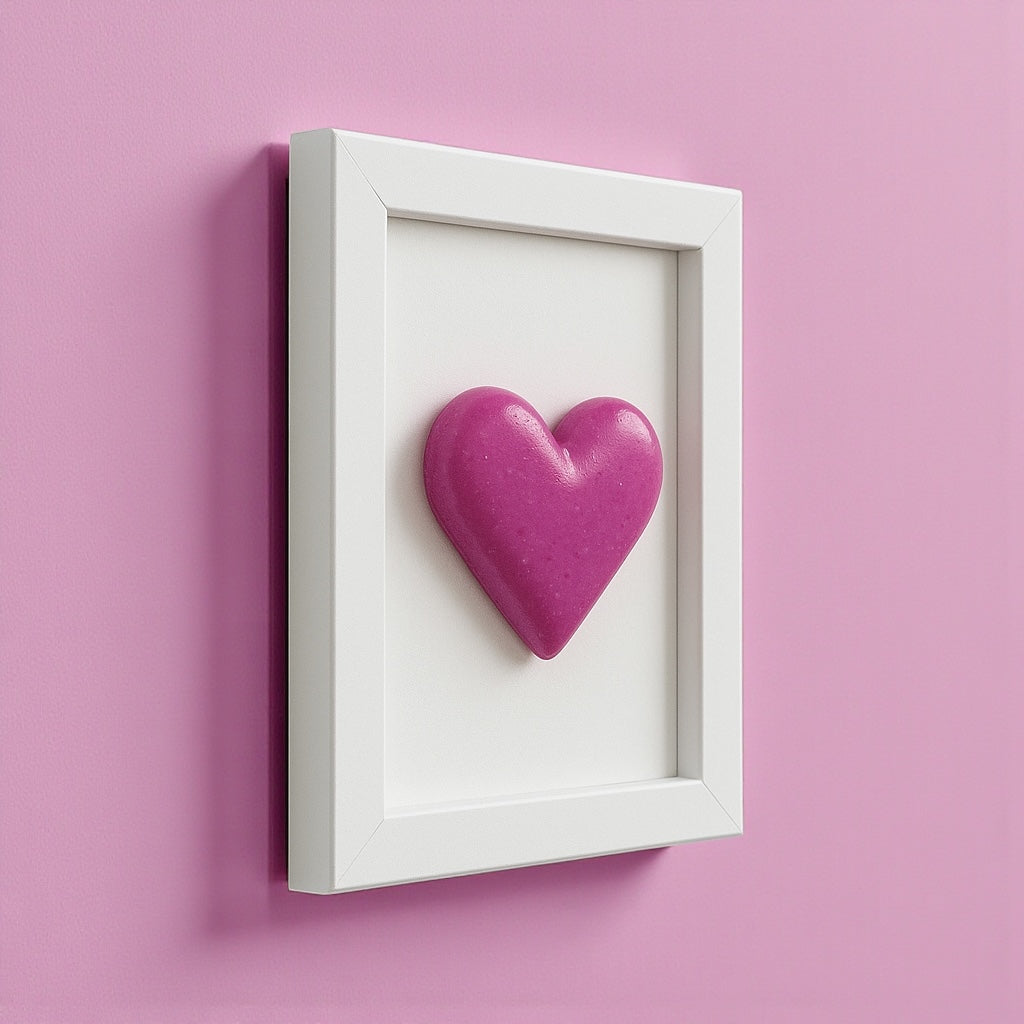 Kalbinizi Yansıtan Sanat Eseri: Bu 3D Kalp Tablo, tutkunun ve zarafetin rengi olan mor/pembe tonlarında, yüksek kaliteli epoksi reçine ile tamamen el yapımı olarak hazırlanmıştır. Canlı rengi ve üç boyutlu yapısıyla, sade beyaz bir 10x15 cm çerçeve içinde sergilenerek modern ve dikkat çekici bir sanat eseri oluşturur.