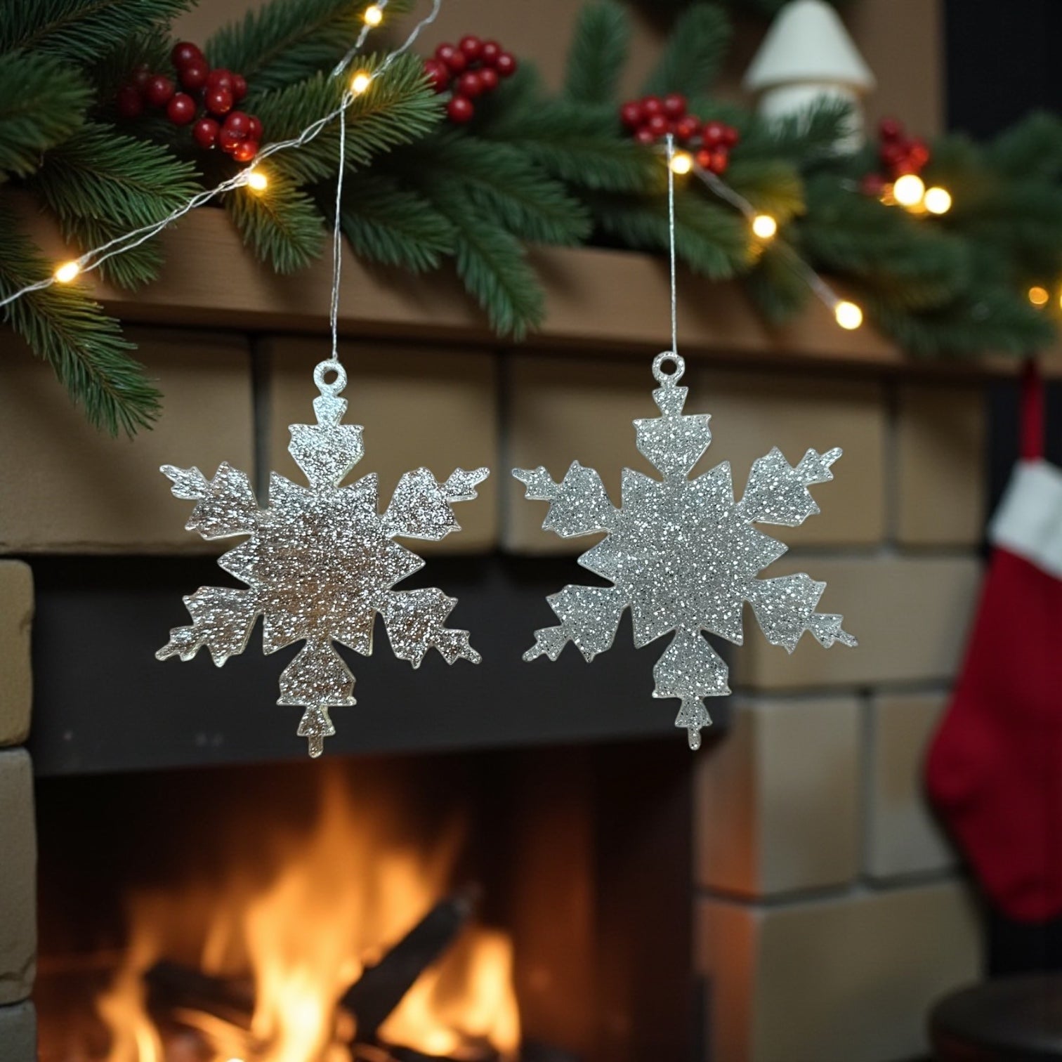 Göz Kamaştırıcı Parlaklık: Süsler, yoğun gümüş simli kaplamaya sahiptir. Işıklar açıldığında kar tanesi motifi parlayarak büyüleyici bir atmosfer yaratır.
