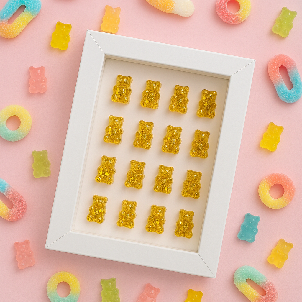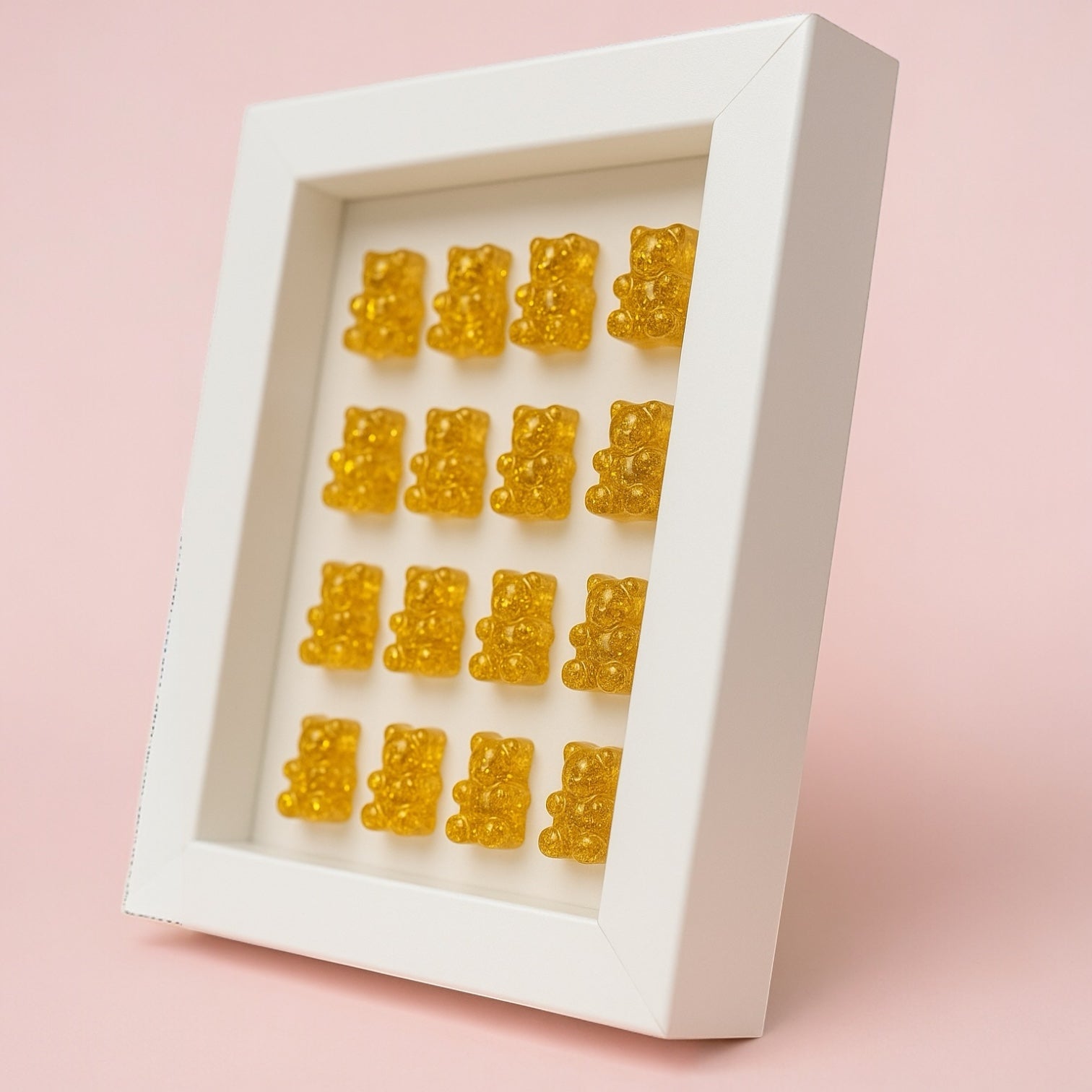 Bu eşsiz el yapımı reçine dekoratif ürün ile yaşam alanlarınıza ışıltı katın! Altın simli ayıcık figürleriyle tasarlanan bu duvar panosu, modern ve şık bir görünüm sunar. Her biri özenle hazırlanan reçine ayıcıklar, beyaz çerçeve içinde göz alıcı bir tablo oluşturur.