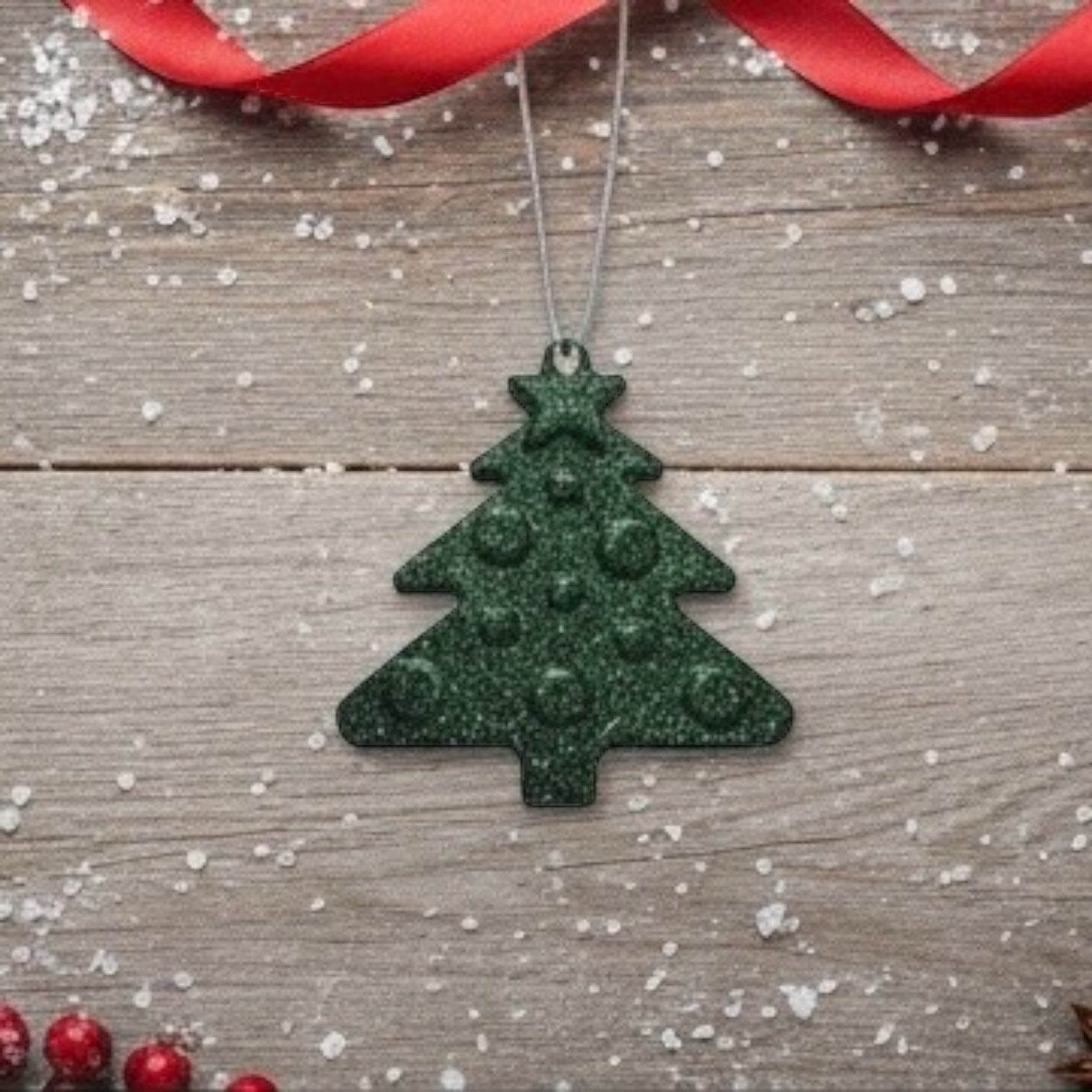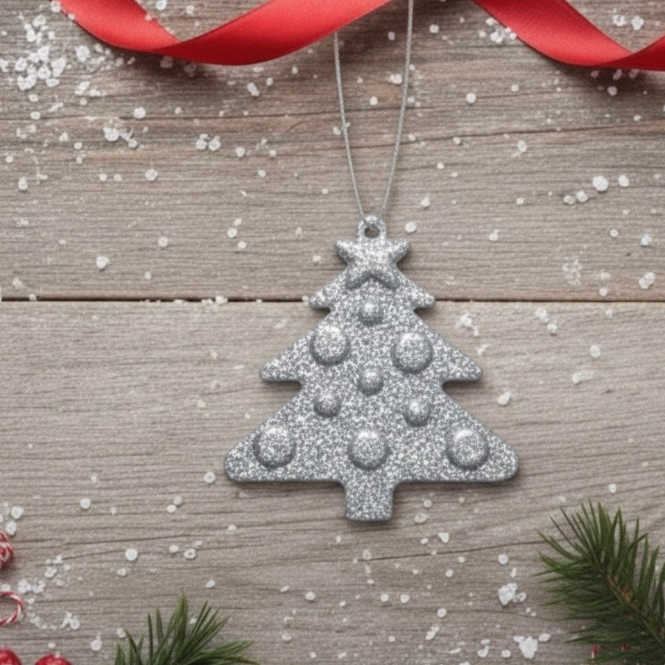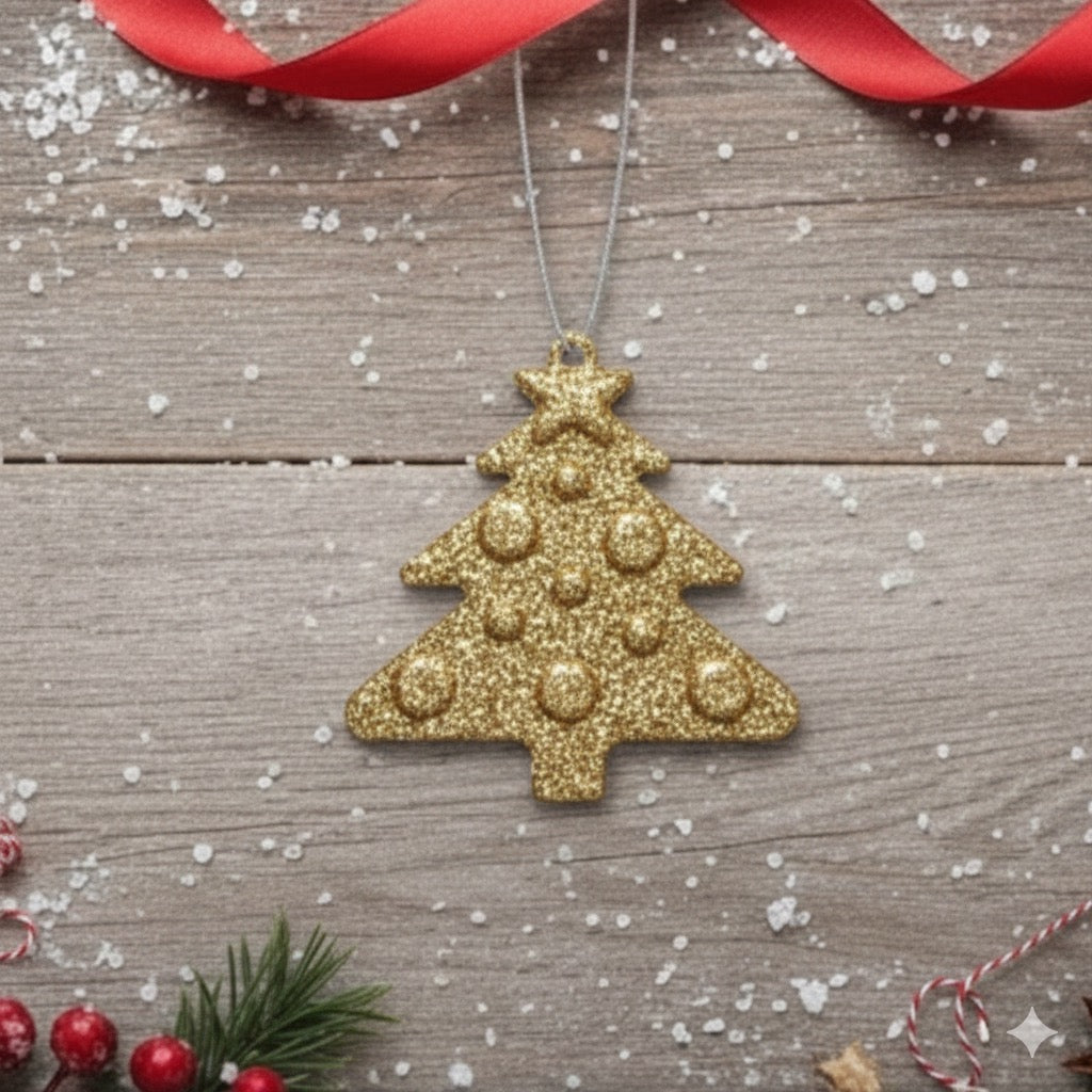 Reçine Yılbaşı Ağacı Süsü 5.5 cm – Gümüş, Yeşil, Altın Sarısı ve Kırmızı – El Yapımı
